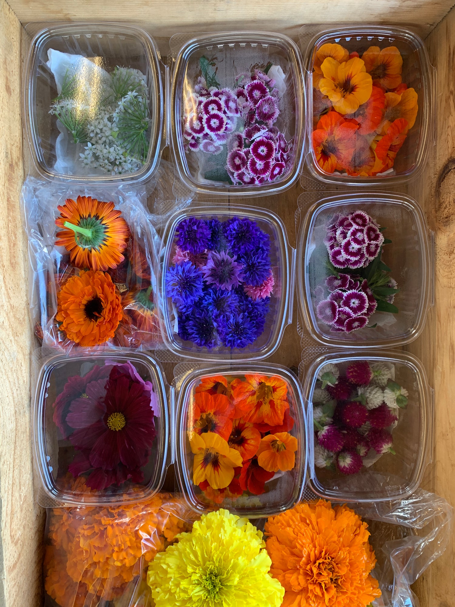 We offer a beautiful selection of seasonal edible flowers as well as wonderful bouquets to beautify your spaces!